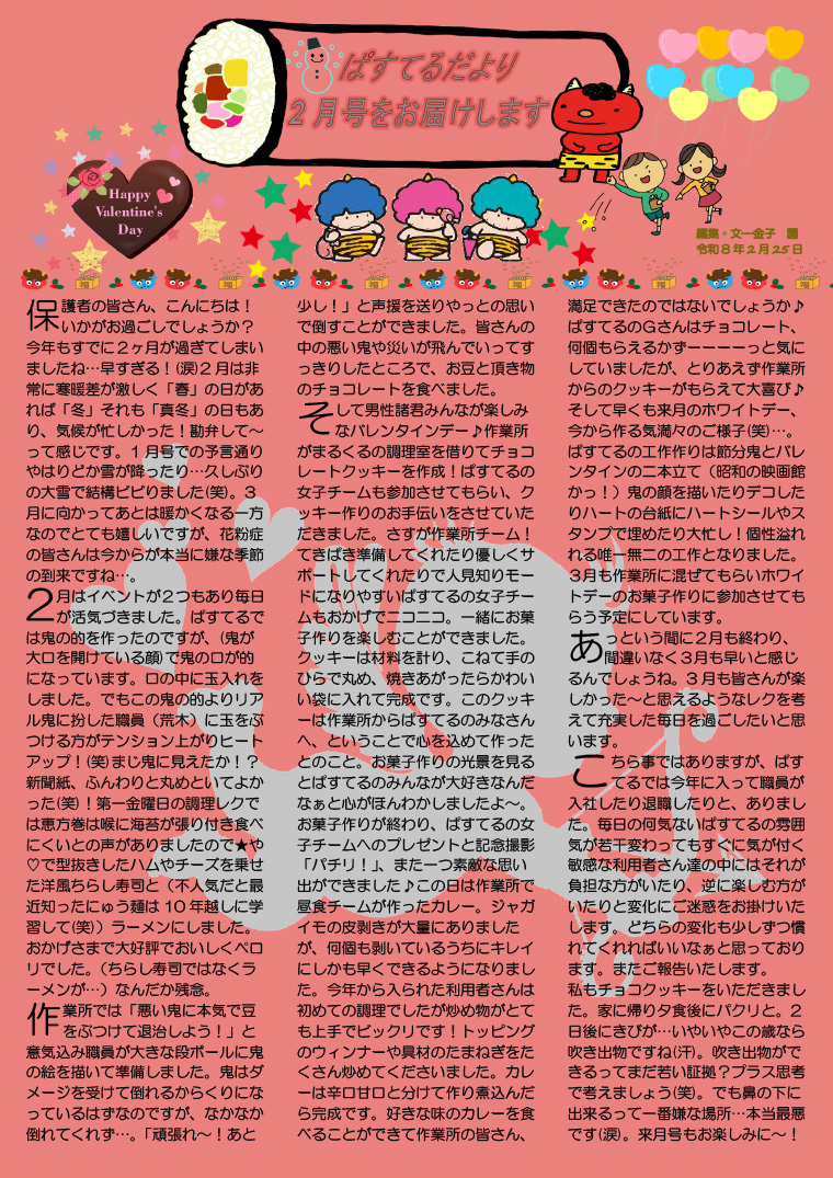 ぱすてるだより2026年2月号です。